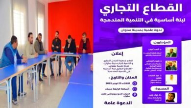 اقتصاد الشرق تحت شعار “القطاع التجاري لبنة أساسية في التنمية المندمجة”، تنظم جمعية التبادل التجاري والتنمية بمدينة سلوان، ندوة علمية…