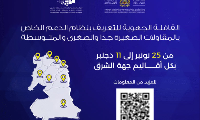 تنطلق القافلة الجهوية للتعريف بنظام الدعم الخاص بالمقاولات الصغيرة جدًا والصغرى والمتوسطة عبر مختلف أقاليم جهة الشرق، في الفترة الممتدة من 25 نونبر إلى 11 دجنبر 2025. تأتي هذه المبادرة بهدف تقريب المعلومة من المقاولين وحاملي المشاريع، وتسهيل ولوجهم إلى آليات الدعم المتاحة في إطار تشجيع المبادرة الخاصة وتعزيز النسيج الاقتصادي المحلي.